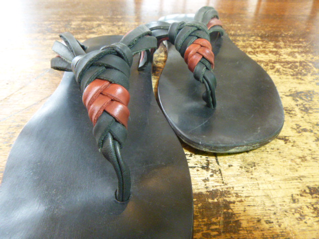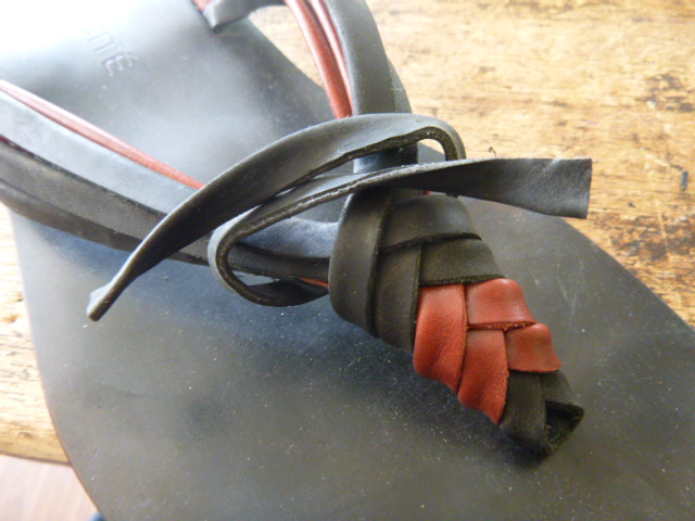※革に縫いをかけるという事は革にミシン目を作る事になります。紙のミシン目を想像してみてください。(特にトングは細いパーツなので、縫いを施せば元の革素材自体の強度はほとんど残らないと考えるべきでしょう。)